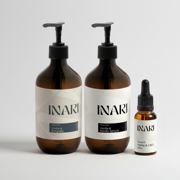 This ritual begins with the Cedar & Saltgrass Body Wash, cleansing the skin with mineral freshness and a trace of coastal wood. The Vanilla & Nordic Spruce Hand Wash follows, softening and rebalancing with gentle warmth against the cool air. Finally, the Hemp & CBD Facial Oil completes the ritual - restoring calm and moisture, grounding the senses in a deep, meditative serenity.