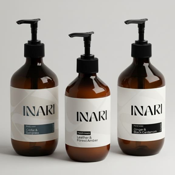 This trio combines the warming spice of Ginger & Black Cardamom Hand Wash, the smooth depth of Leather & Forest Amber Hand Cream, and the mineral purity of Cedar & Saltgrass Body Wash. Together, they evoke the rhythm of the sauna: heat opening the skin, air thick with spice and wood, followed by a quiet moment of calm.
